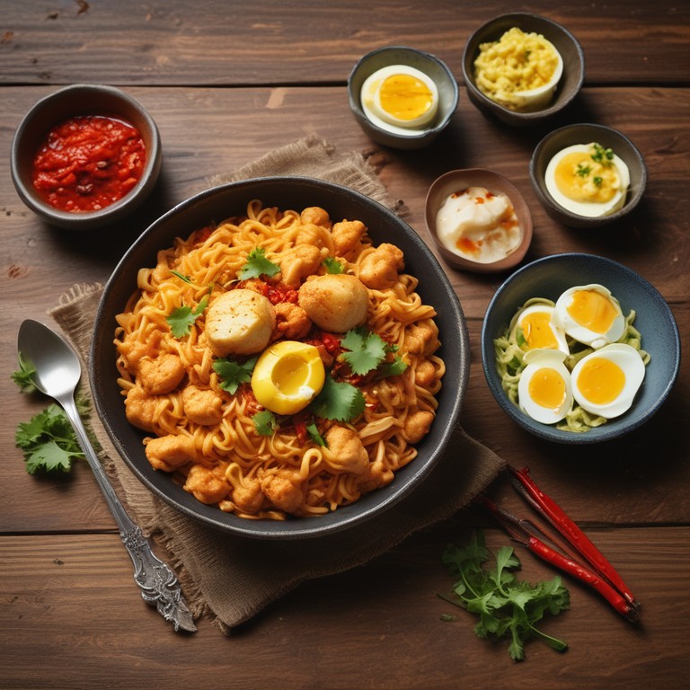 A quick and delicious recipe combining Maggi noodles with spicy chicken masala and scrambled eggs, perfect for a satisfying meal.