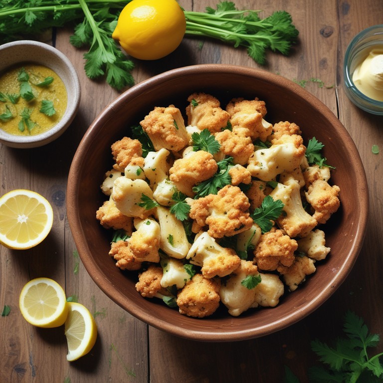 Dieses vegane Hauptgericht kombiniert gerösteten Blumenkohl mit einer cremigen Zitronen-Mandelmus-Sauce und aromatischer Petersilie. Die Kombination aus geröstetem Blumenkohl und der samtigen Sauce bietet eine köstliche Mischung aus Texturen und Aromen, die sowohl leicht als auch sättigend ist.