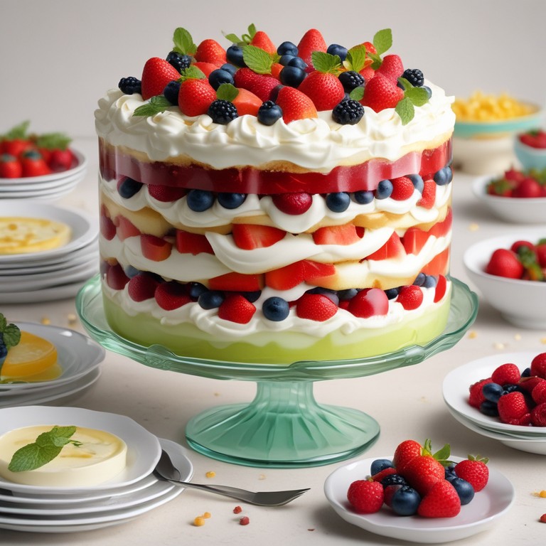 This Grand Custard and Jelly Trifle is a delightful dessert perfect for serving a crowd. With layers of creamy custard, fruity jelly, moist sponge cake, and whipped cream, it's a visually stunning and delicious treat that will impress your guests.