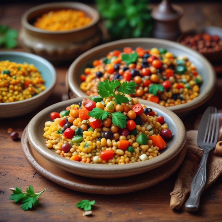 This Algerian Couscous recipe features fluffy couscous topped with a medley of spiced vegetables and chickpeas, creating a hearty and flavorful dish that is perfect for any occasion.
