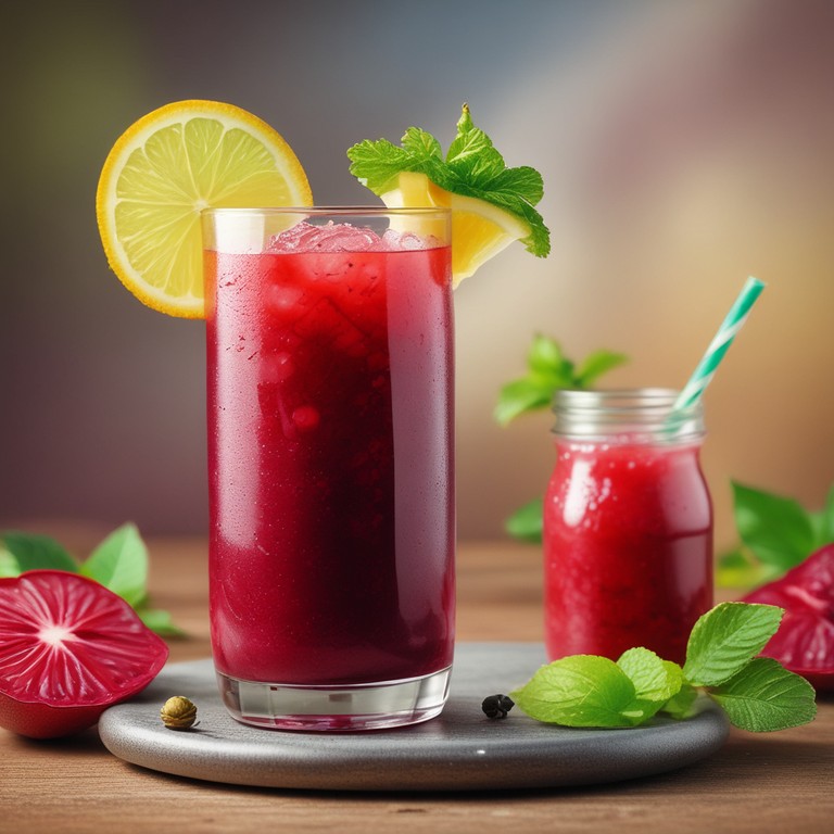 This Tangy Hibiscus Chia Slush Tea is a refreshing drink that starts with a tangy burst from hibiscus and cranberry, transitioning into a mellow sweetness from cane sugar. The addition of chia seeds adds a unique texture and health benefits, making it a perfect summer beverage.