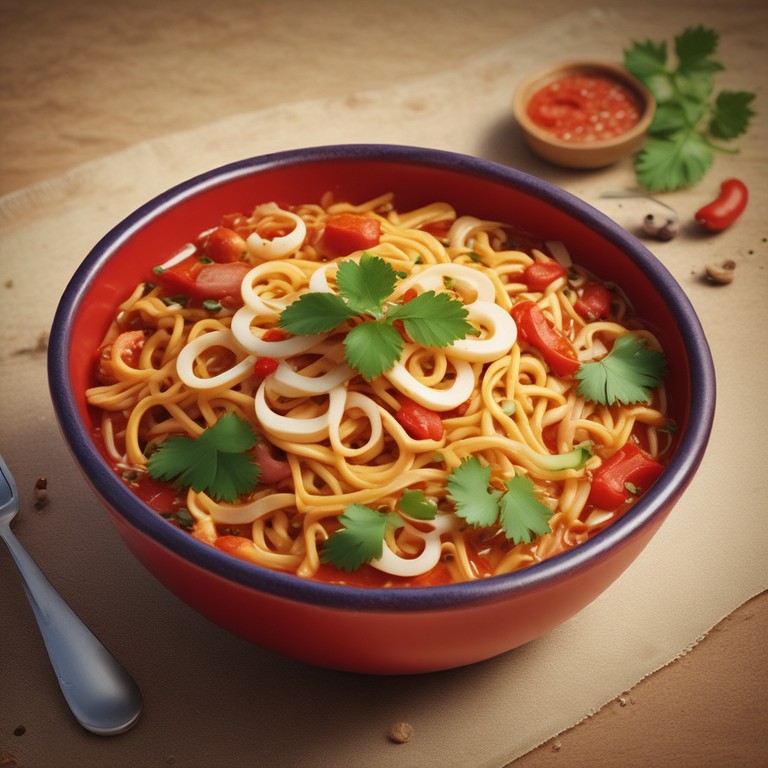 A quick and flavorful dish that elevates instant Maggi noodles with fresh tomatoes, onions, and a blend of spices for a deliciously spicy experience.