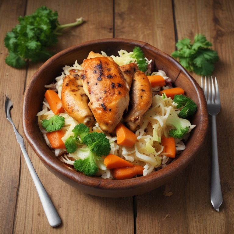 Uma receita saborosa e saudável de frango refogado com repolho e cenoura, perfeita para uma refeição leve e nutritiva.