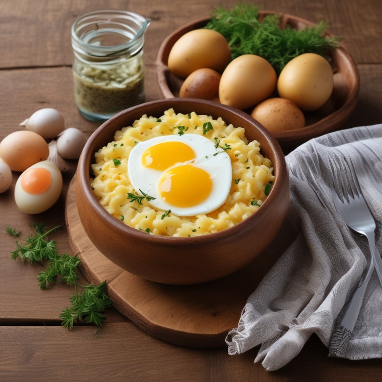 Cheesy Potato and Egg Rice Bowl