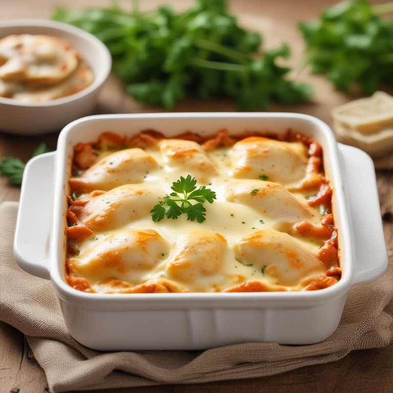 This Creamy Chicken and Cheese Ravioli Bake is a comforting and indulgent dish that combines tender chicken, rich cream, and cheesy ravioli, perfect for a family dinner.