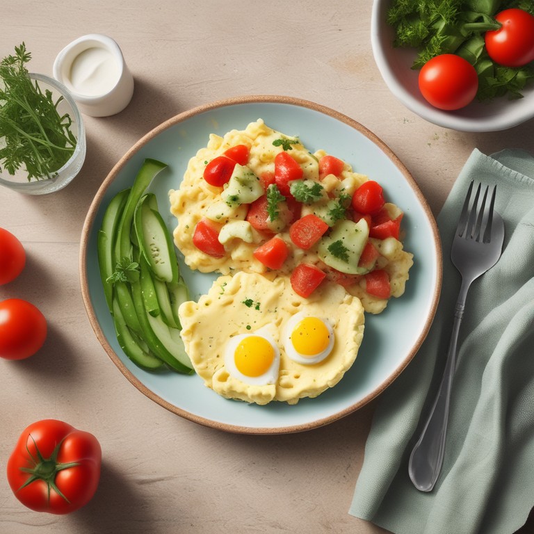 This Creamy Tomato and Cucumber Egg Scramble is a delightful breakfast dish that combines fluffy scrambled eggs with the freshness of tomatoes and cucumbers, all enriched with creamy cream cheese. Perfect for a nutritious start to your day!
