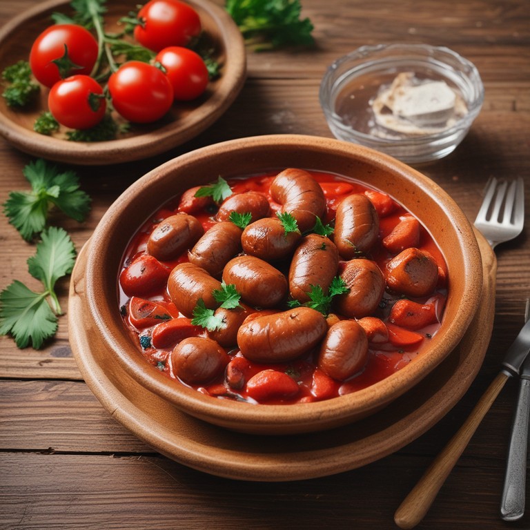 Uma receita simples e saborosa de salsicha cozida em um molho de tomate fresco com cebola, perfeita para um almoço rápido ou um jantar aconchegante.