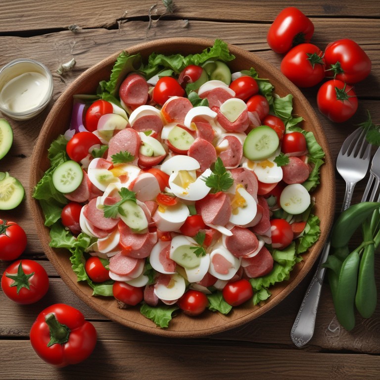 Этот салат с копчёной колбасой и моцареллой - идеальное сочетание вкусов и текстур. Он отлично подходит для закуски или как основное блюдо на праздничном столе.