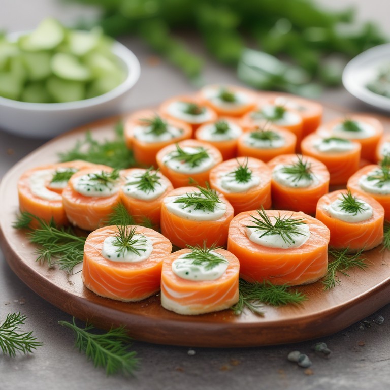 Geräucherte Lachs-Röllchen mit Frischkäse und Dill