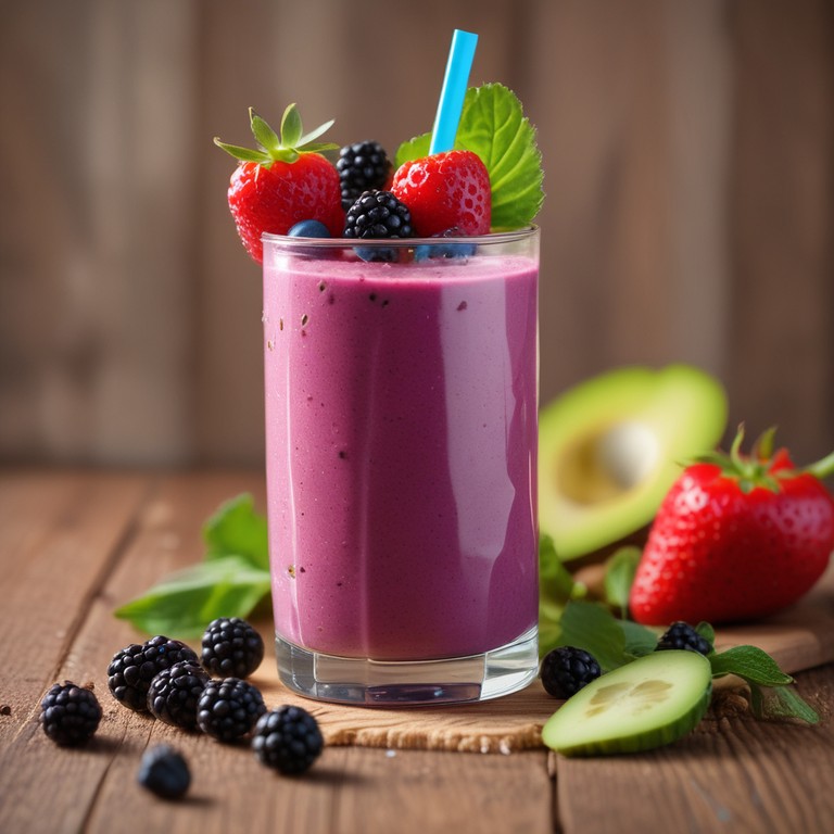 Este batido es una deliciosa y nutritiva combinación de moras, fresas, aguacate y avena, ideal para un desayuno energético o un refrigerio saludable. Su textura cremosa y su sabor afrutado lo hacen irresistible.