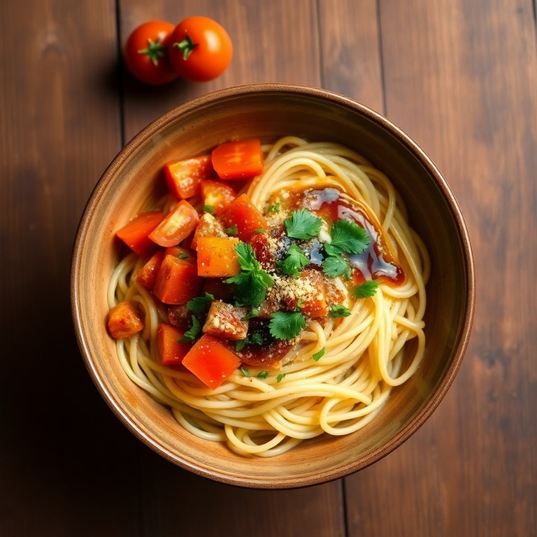 Savory Maggi Noodles with Tomato, Soy Sauce, and Maggi Seasoning