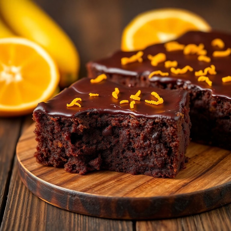 Brownie de Plátano con Topping de Chocolate Negro y Toque de Naranja