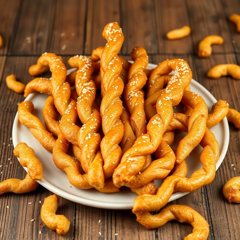 Crunchy Wheat Flour Twists with Sesame Seeds
