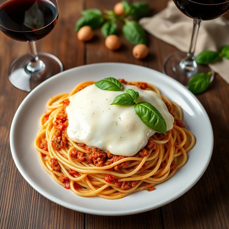 Savory Spaghetti Bolognese with Mozzarella Meltdown
