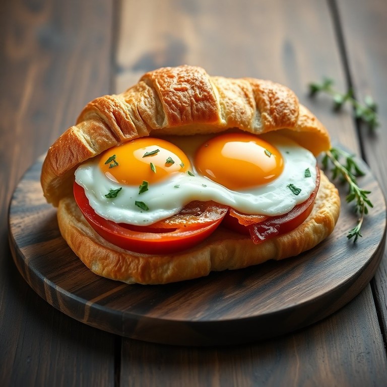 This Savory Croissant Breakfast Sandwich is a delightful way to start your day, combining flaky croissants with rich eggs, fresh tomatoes, and sweet caramelized onions for a perfect breakfast treat.