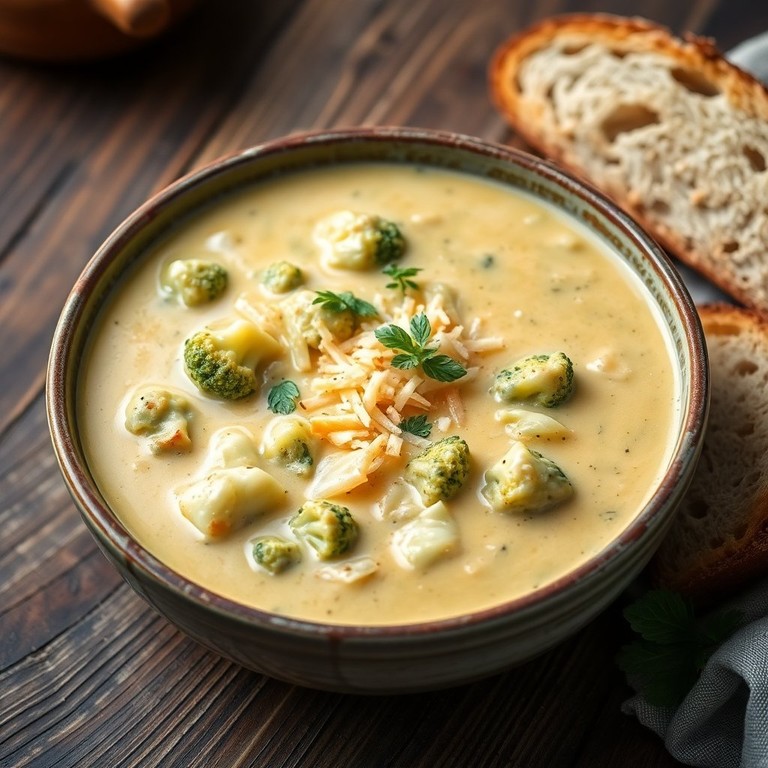 This creamy broccoli and cabbage cheese soup is a velvety blend of fresh vegetables and rich cheese, perfect for a comforting meal. It's easy to make and packed with flavor, making it a delightful choice for any occasion.