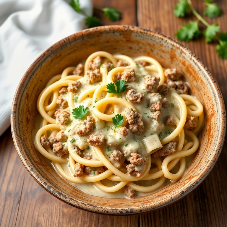 Uma combinação irresistível de massa e carne com um molho suave e cremoso.