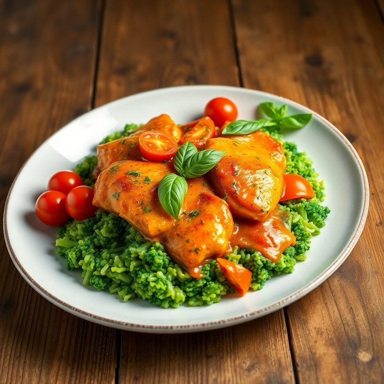 This Creamy Tomato Basil Chicken over Broccoli Rice is a rich and indulgent dish that transforms simple ingredients into a gourmet experience. The creamy sauce, infused with fresh basil and sweet cherry tomatoes, perfectly complements the tender chicken and nutritious broccoli rice, making it a delightful meal for any occasion.