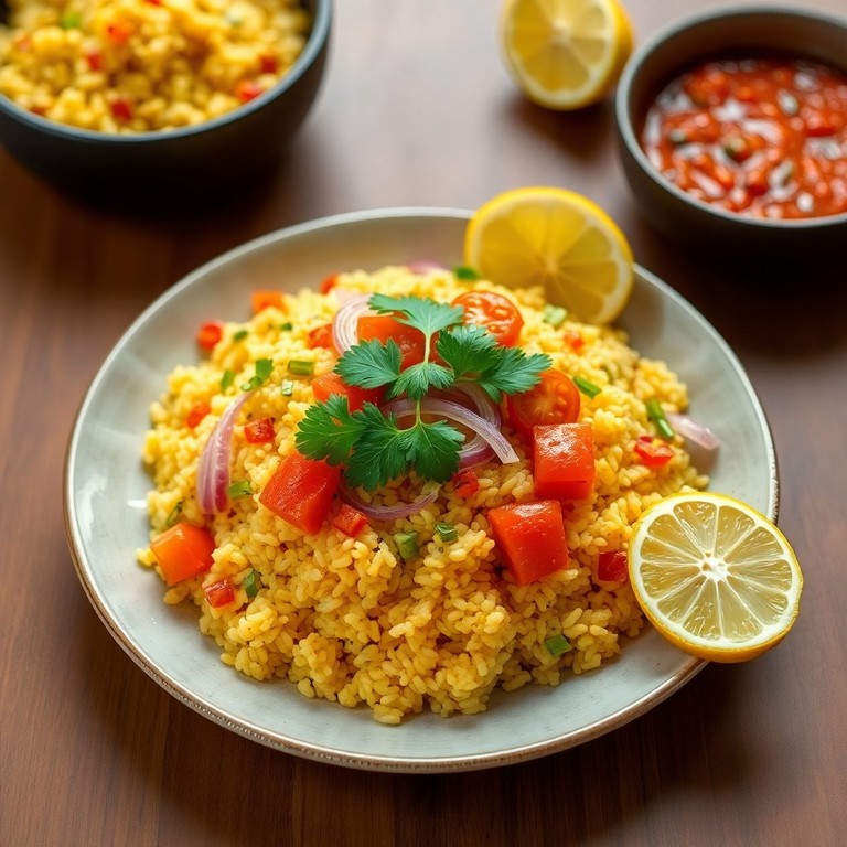 A quick and nutritious South Indian breakfast dish bursting with flavors, featuring semolina cooked with tomatoes, onions, and spices, perfect for a wholesome start to your day.