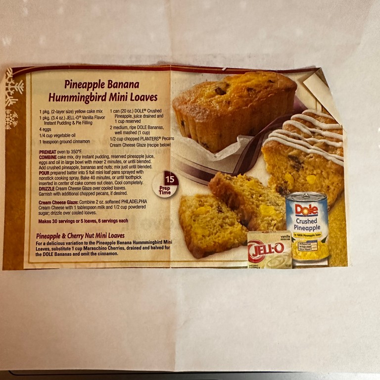 Pineapple Banana Hummingbird Mini Loaves