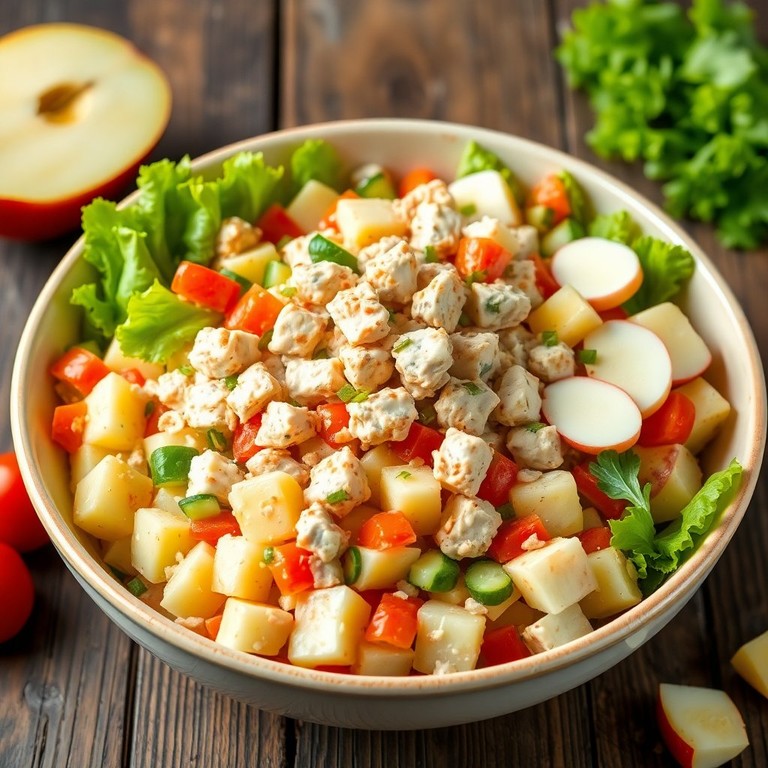 Этот нежный и сытный салат сочетает в себе вкусный картофель, нежный тунец и свежие овощи, создавая идеальное блюдо для обеда или ужина. Легкий и питательный, он станет отличным дополнением к любому столу.
