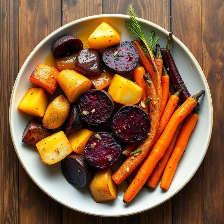 Это блюдо сочетает в себе сладость меда и аромат чеснока, создавая идеальный гарнир из запеченных овощей. Картофель, свекла и морковь запекаются до золотистой корочки, что делает их не только вкусными, но и красивыми на вид.