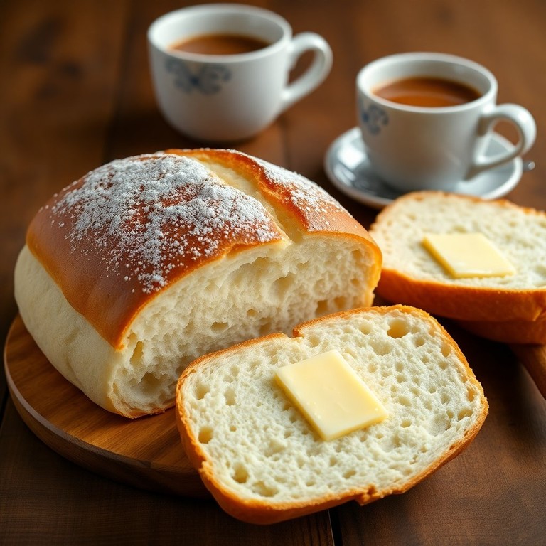 Um pão caseiro fofinho, ideal para acompanhar o café, feito com uma mistura de farinha de trigo e fubá, proporcionando uma textura leve e saborosa.