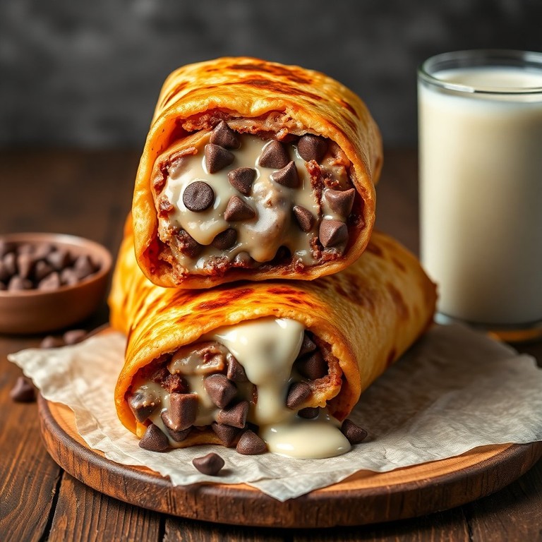 A delightful fusion of chocolate and creamy milk wrapped in dough, perfect for dessert or a sweet snack.