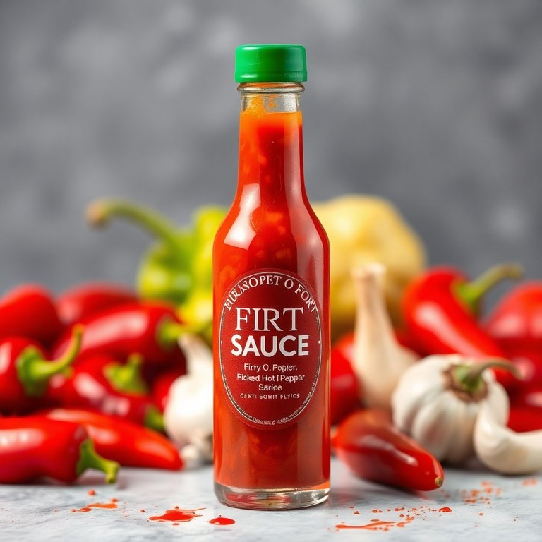This Fiery Pickled Pepper Hot Sauce is a tangy and spicy condiment that adds a punch to any dish. Made with pickled hot peppers, garlic, and a blend of spices, it's perfect for drizzling on tacos, mixing into marinades, or spicing up your favorite recipes.