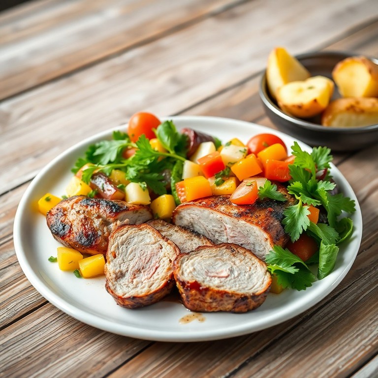 Lomo de Cerdo a la Parrilla con Ensalada Fresca y Papas Horneadas Saludables