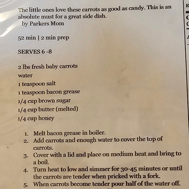 The little ones love these carrots as good as candy. This is an absolute must for a great side dish.