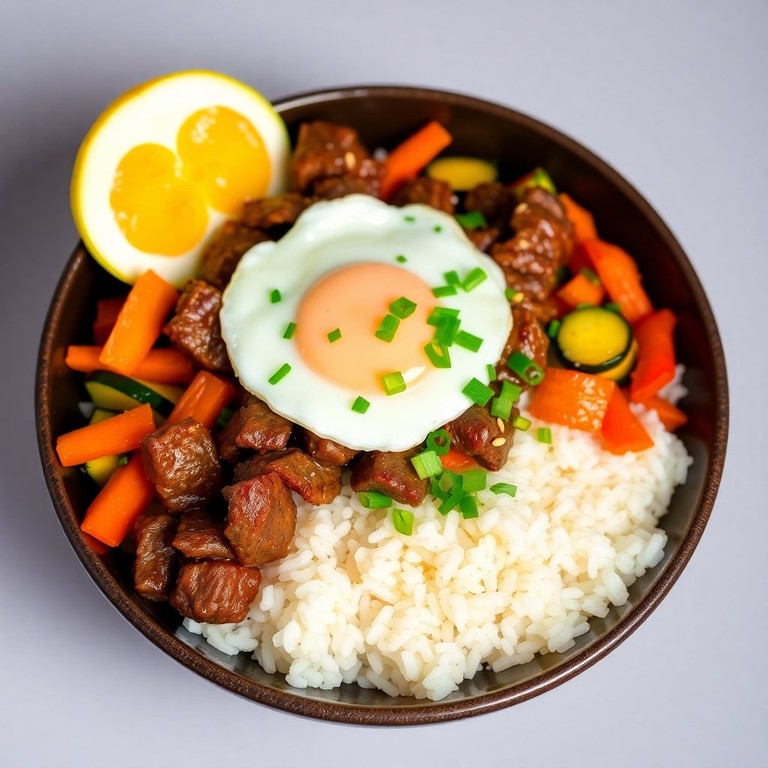 This Spicy Beef Bibimbap is a delightful Korean dish that combines tender marinated beef with a variety of fresh vegetables, all served over warm rice. It's a colorful and nutritious meal that is both satisfying and full of flavor.