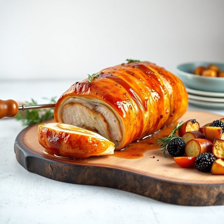 Deze sappige procureur rollade is gemarineerd in een heerlijke mix van ansjovis, honing en mosterd, wat zorgt voor een onweerstaanbare smaak die perfect is voor een feestelijke maaltijd. De combinatie van de zoute ansjovis met de zoetheid van honing en de pittigheid van mosterd maakt dit gerecht uniek en smaakvol.
