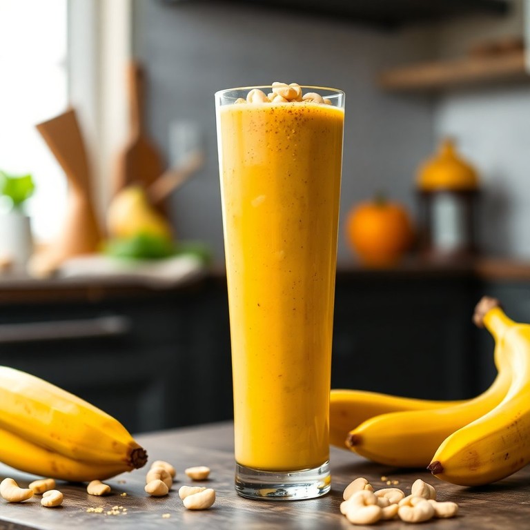 Fuel your day with this calorie-rich smoothie bursting with flavors of banana, cashews, and a touch of honey.