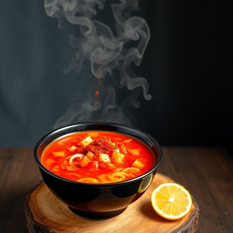 A comforting bowl of Maggi infused with hot & sour flavors and a kick of chili powder, perfect for a quick and satisfying meal.