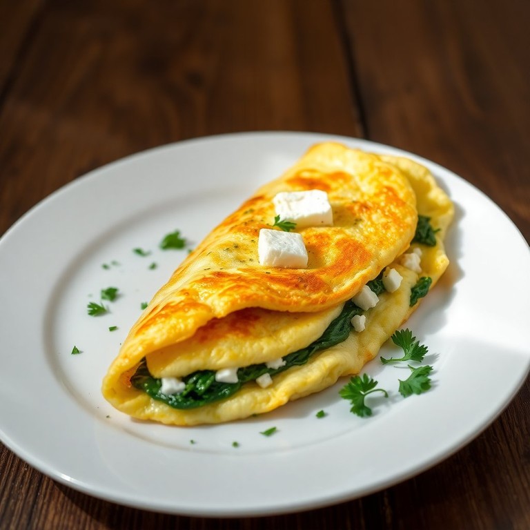 A fluffy omelette filled with fresh spinach, creamy feta, and herbs for a delightful morning boost.