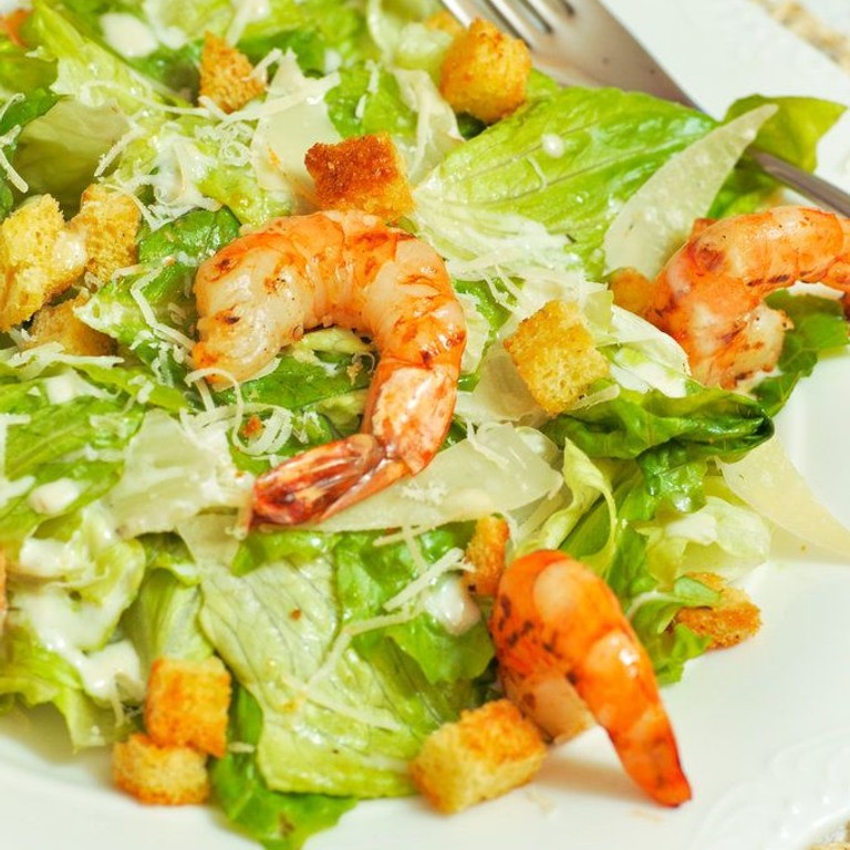 4. Салат цезарь с креветками