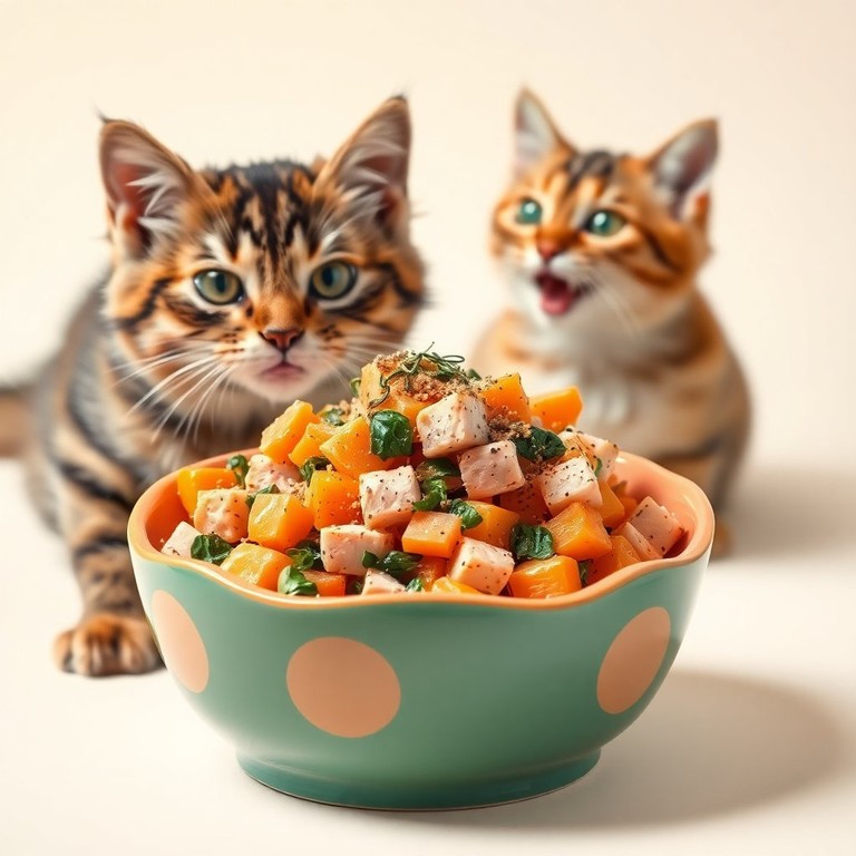 This savory tuna dish is specially crafted for your feline friend, combining nutritious ingredients that are sure to make their taste buds dance with joy. The addition of sweet potato and spinach not only enhances the flavor but also provides essential vitamins and minerals. Perfect for a special treat or a daily meal, your cat will be begging for more!