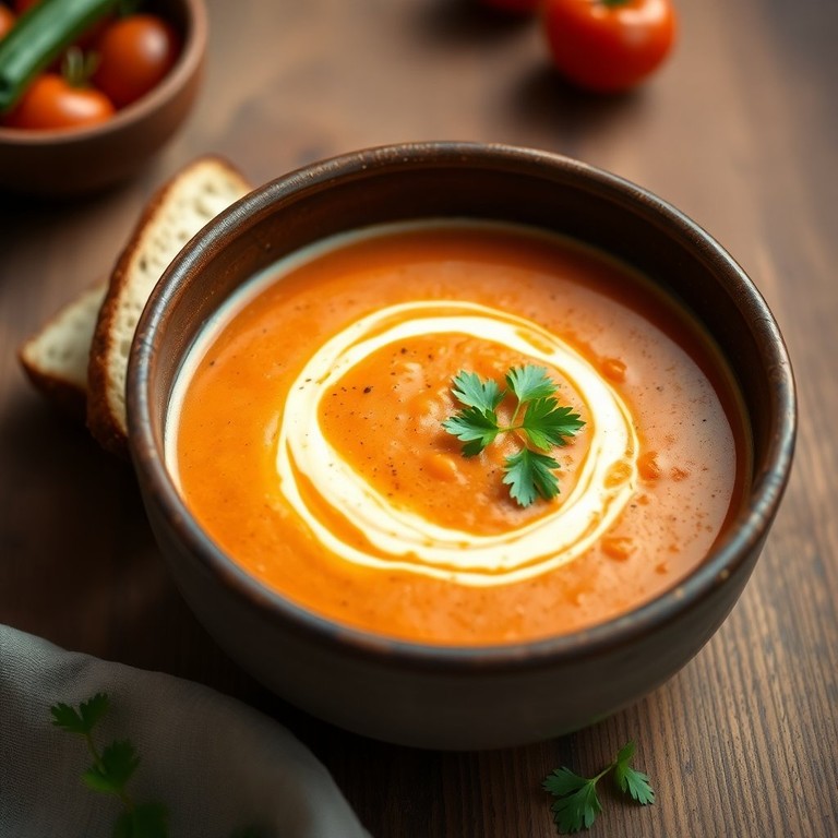 Sopa Cremosa de Tomate e Abobrinha com Curry
