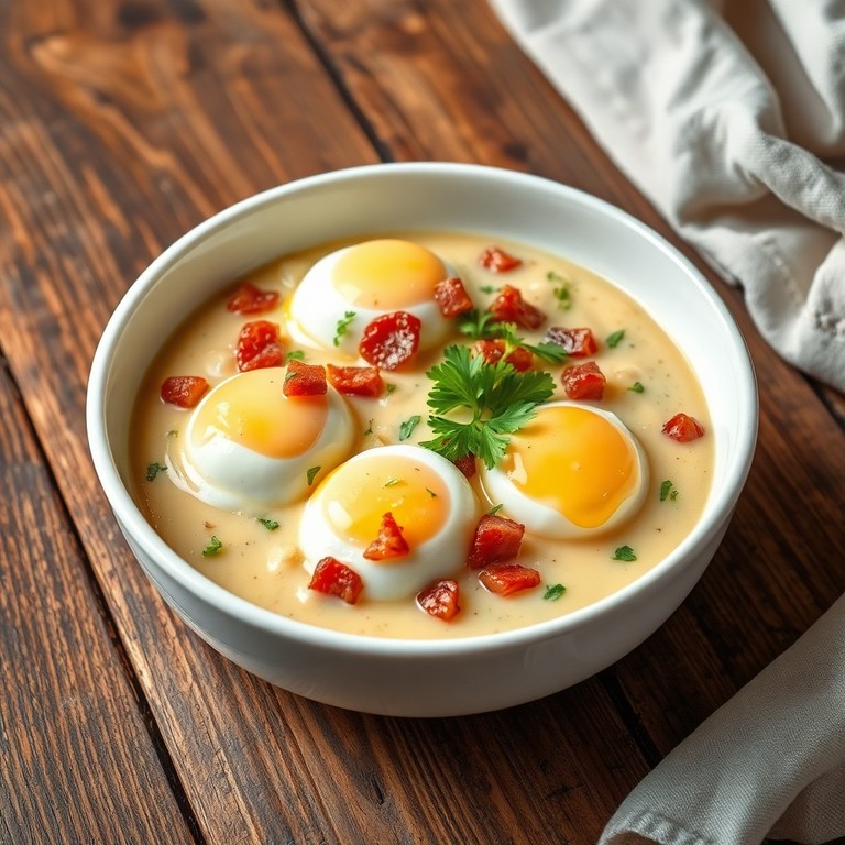Un plat réconfortant où des œufs pochés sont servis dans une sauce crémeuse au lard, idéal pour un brunch gourmand en 30 minutes.