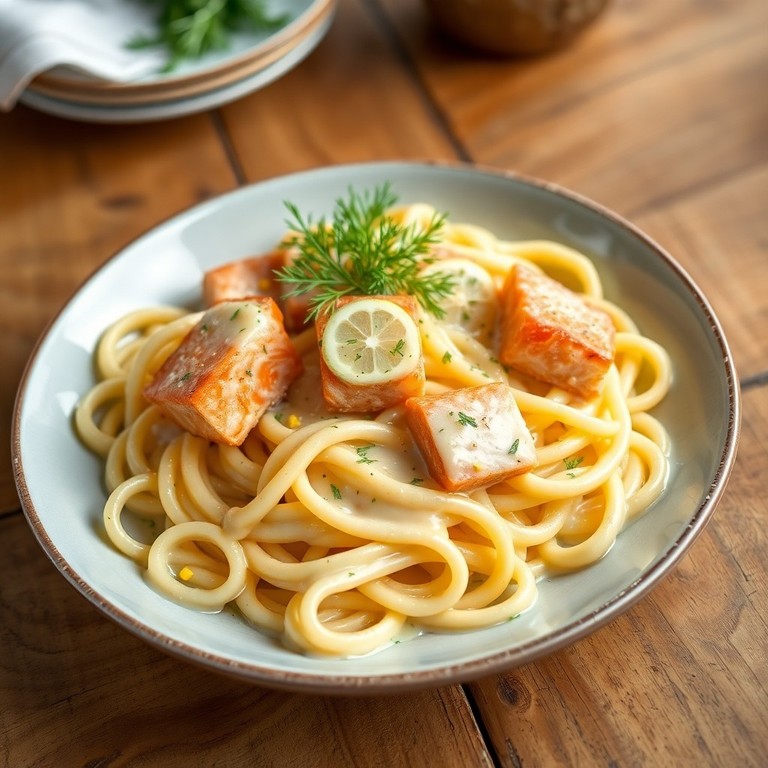 Lachs-Nudeln in Zitronen-Dill-Sauce