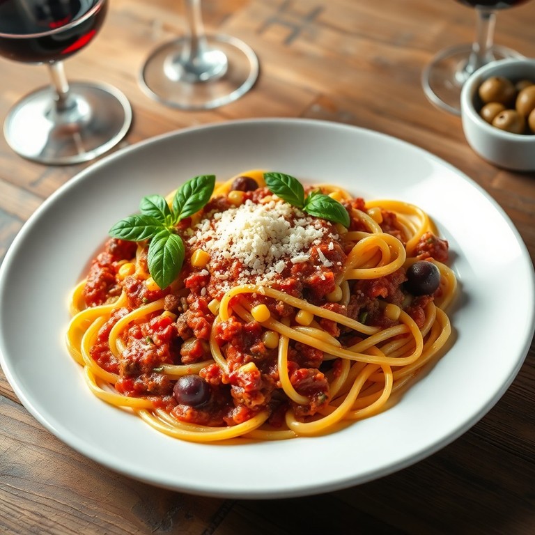 Espaguete Bolonhesa Aprimorado com Milho e Azeitonas