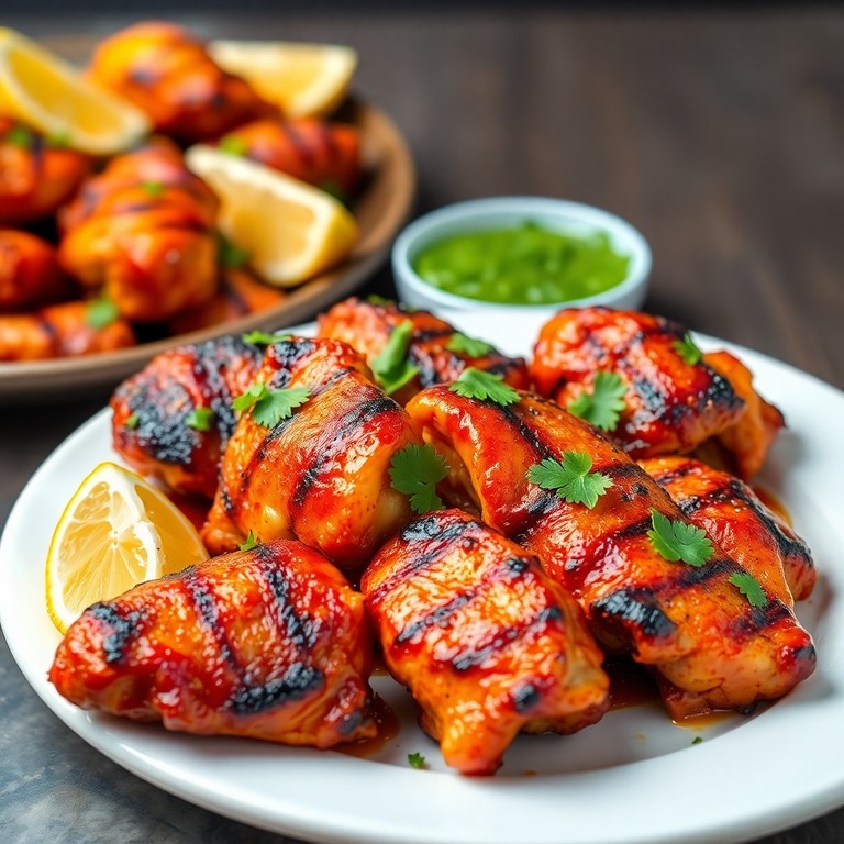 Tender chicken pieces marinated in a vibrant chaat masala yogurt blend, grilled to perfection and served with a refreshing mint-coriander chutney. A quick and flavorful appetizer or light meal.