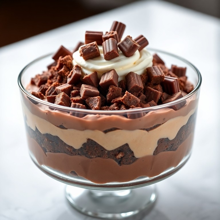 Layers of coffee-soaked sponge cake, creamy milk chocolate mousse, and crushed Kit Kat bars create a delightful dessert. This no-bake treat is easy to assemble and perfect for impressing guests.