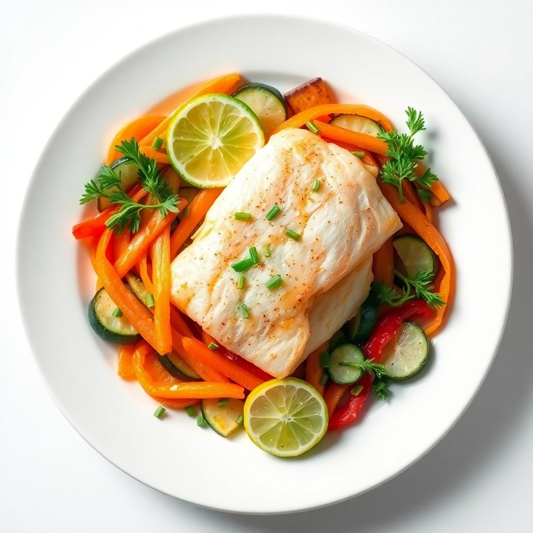 Lieu noir en papillote, infusé aux saveurs vives du citron vert, servi avec une julienne de légumes vapeur pour une texture délicate. Coût matière : 3.15€ par personne en France 2025.