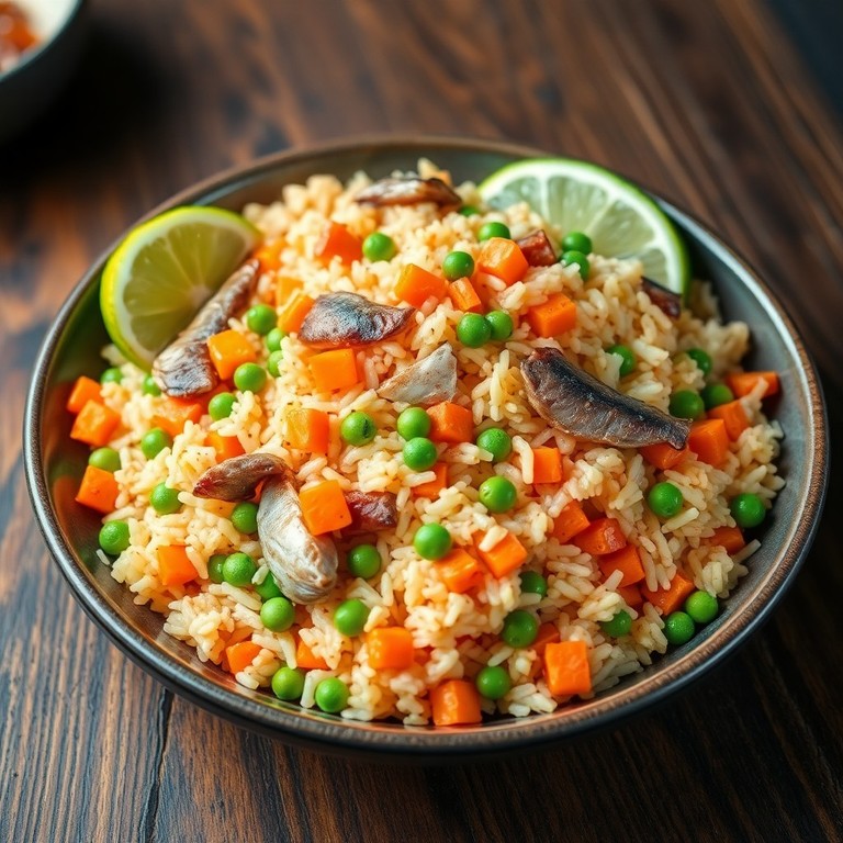 A simple yet satisfying Asian-inspired dish featuring sardines, ginger, garlic, and soy sauce, garnished with scallions and lime.