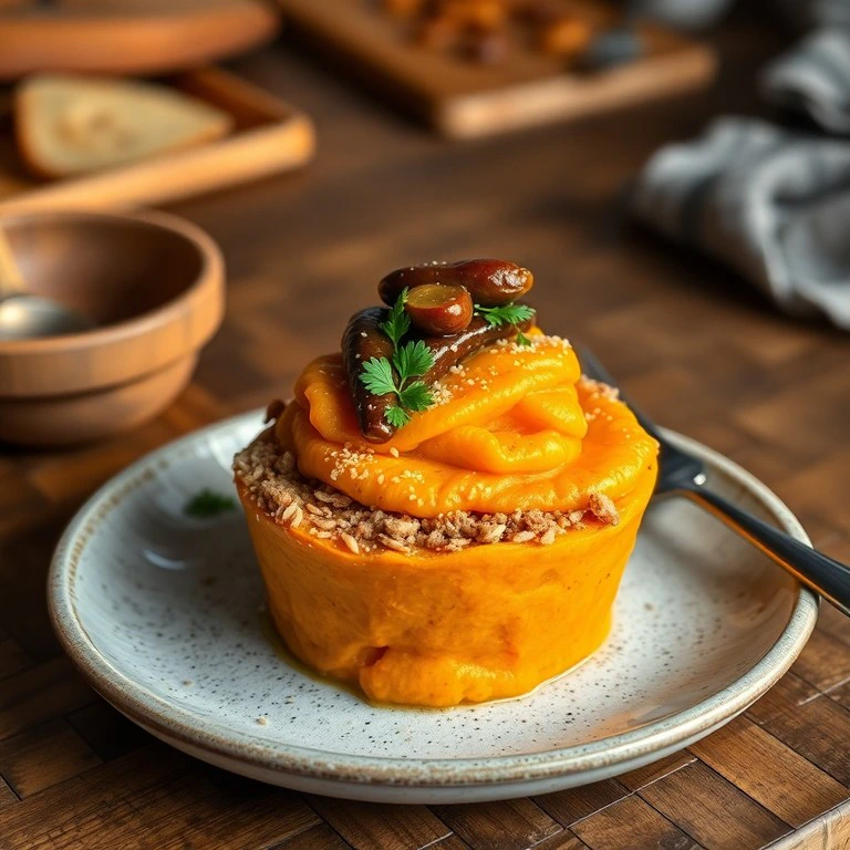 Um prato reconfortante e rápido, combinando a textura crocante do Kami Kana com a cremosidade do purê de batata-doce e o sabor adocicado do quiabo caramelizado. Ideal para uma refeição prática e saborosa.