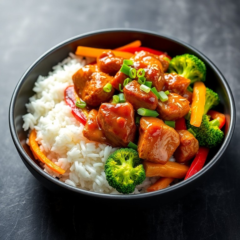 A vibrant stir-fry featuring tender chicken thighs, crisp rainbow bell peppers, and broccoli, all coated in a luscious homemade teriyaki sauce and served over fluffy minute rice. Ready in under 30 minutes!