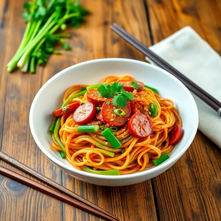 Spicy Sausage and Green Onion Stir-Fried Noodles