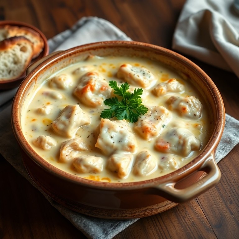 Tavuk, süt ve krema ile zenginleştirilmiş geleneksel bir güveç yemeği. Domates salçası ve baharatlarla lezzetlendirilen kremalı sos, tavuk parçalarını sarmalar ve fırında üzeri hafifçe kızarana kadar pişirilir. Yaklaşık 1 saatlik hazırlık süresi ile evde kolayca yapılabilir, sıcak servis edilirken maydanozla süslenir.